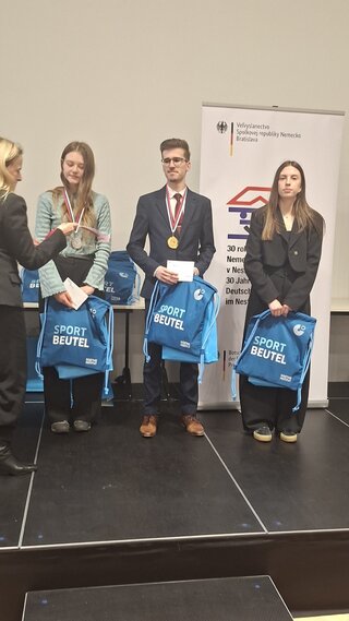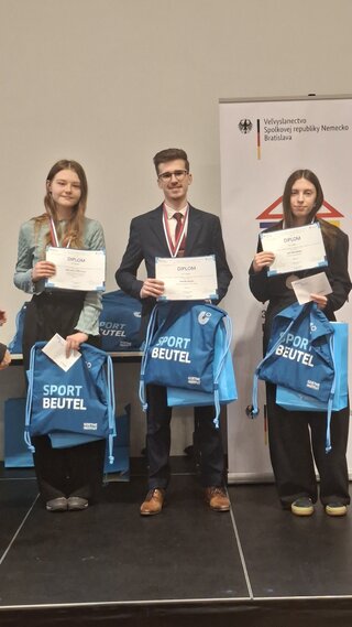 Dňa 26.3. 2026 sa náš študent Marek Kocán zo IV.A triedy zúčastnil na celoslovenskom kole olympiády v nemeckom jazyku v kategórii 2.B. Tretíkrát za sebou sa mu podarilo túto súťaž vyhrať. Opäť dokázal, že je bezkonkurenčne najlepšie nemecky hovoriaci študent na Slovensku. Patrí mu veľká gratulácia a taktiež poďakovanie za vzornú reprezentáciu našej školy. Takýto úspech nie je určite obvyklý. Prajeme mu úspešné pokračovanie v prehlbovani vedomostí aj z nemeckého jazyka na vysokej škole v Nemecku, kde sa rozhodol ďalej študovať